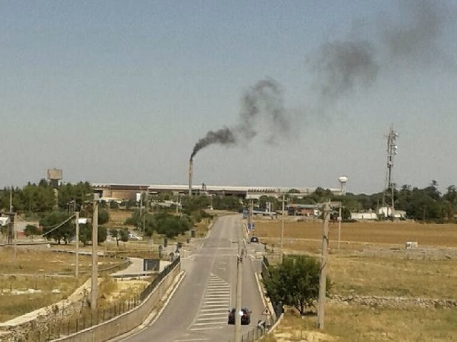 Figura 13 Una nuvola di fumo nero viene emessa dall’impianto sperimentale DISMO (presso l’Ansaldo Caldaie di Gioia del Colle) dove da oltre un decennio si sperimenta la combustione di rifiuti anche pericolosi
