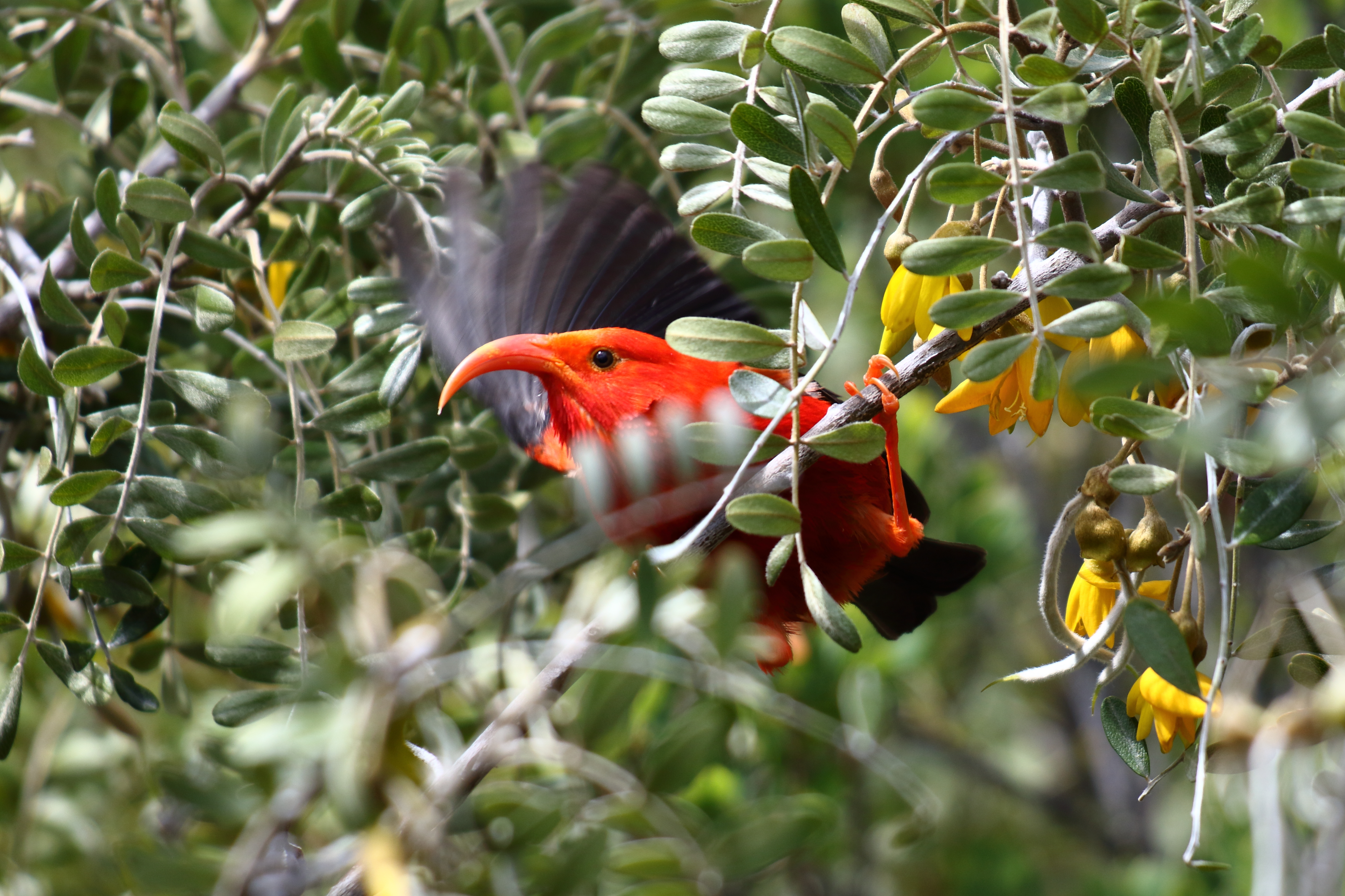 Questi magnifici uccelli, alcuni facilmente identificabili per il becco ricurvo utile a prelevare il nettare dai fiori a lungo calice degli alberi di koa e ohia, conservano come nomi comuni quelli associati dagli indigeni in base a caratteristiche fisiche o dei loro richiami. Veloci e agili, si muovono di fiore in fiore nella riserva Waikamoi all’interno del parco, gli ‘i’iwi e gli ‘apapane, dal piumaggio rosso brillante, e gli ‘amakini, con le loro penne verdi e gialle.