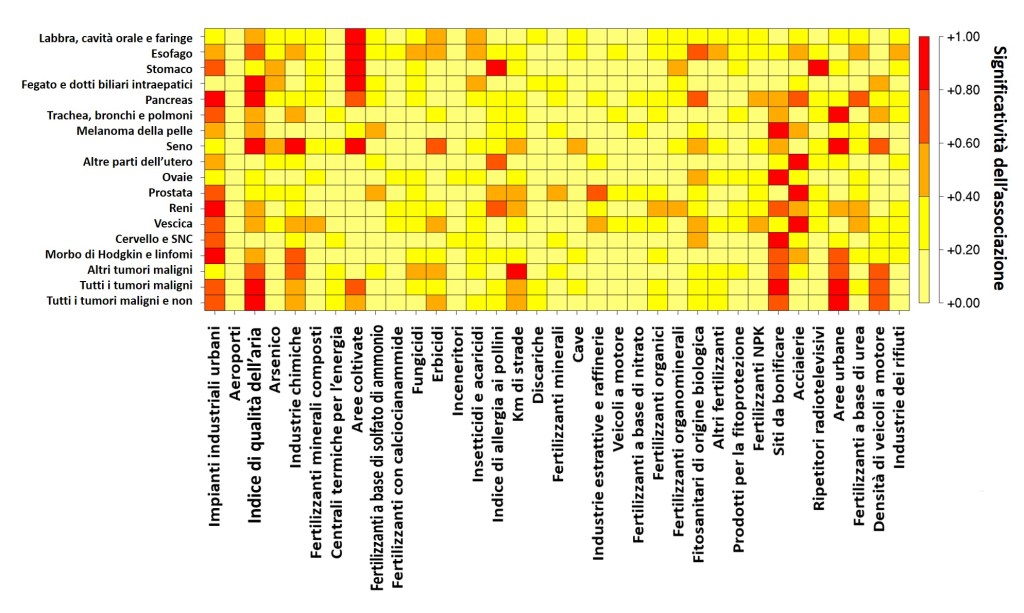 Questo importante studio, è stato in grado, innanzitutto su scala nazionale e regionale, di mostrare la rilevanza dell’ambiente rispetto ad altri fattori socio-economici e allo stile di vita, e in secondo luogo, di determinare, su scala provinciale più fine, quali potenziali fonti di inquinamento potrebbero causare un eccesso di mortalità per cancro rispetto alla media nazionale e, infine, di fornire un focus sui fattori ambientali che sono per lo più associati a specifici tipi di cancro.