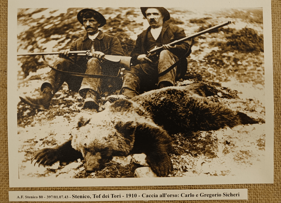 Mi ha molto colpito, nel museo etnografico di Stenico (TN), a due passi proprio dalla Val di Sole in cui è avenuto il recente incidente tra uomo e orso, una fotografia d’epoca, risalente al 1910 in cui due cacciatori siedono fieri affianco ad un orso morto. Questa immagine, più evocativa di qualunque risposta si possa dare al commento precedente, ci dice, innanzitutto, che l’orso in quel territorio è sempre stato presente, da ben prima che venisse reintrodotto di recente e, in secondo luogo, che c’è stata una massiccia eliminazione da parte dell’uomo degli individui che ne componevano le popolazioni locali prima che si riducesse a poche decine di individui.