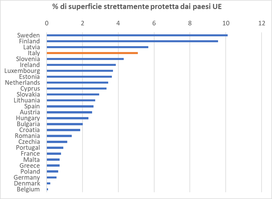 Le attuali aree strettamente protette in Europa sono lontane dall’obiettivo UE 2030
