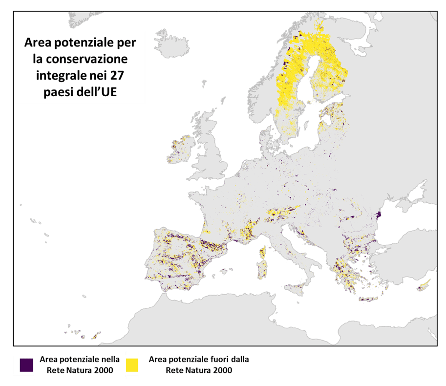 Quindi sarebbe necessario identificare aree potenziali per espandere la protezione integrale europea con bassi costi economici e sociali, comprese, ad esempio, zone con un alto valore di biodiversità, ma bassa popolazione e sfruttamento del territorio. Considerando, però, che in Europa la maggior parte del territorio è stato profondamente modificata dall’uomo, le aree rigorosamente protette dovrebbero comprendere anche territori che possono recuperare il loro valore di biodiversità attraverso il ripristino e il rewilding. Per raggiungere gli obiettivi fissati dalla Strategia UE 2030 per la biodiversità, sarà innanzitutto necessario individuare un’area sufficiente da proteggere integralmente per un 10% di ciascun paese membro.